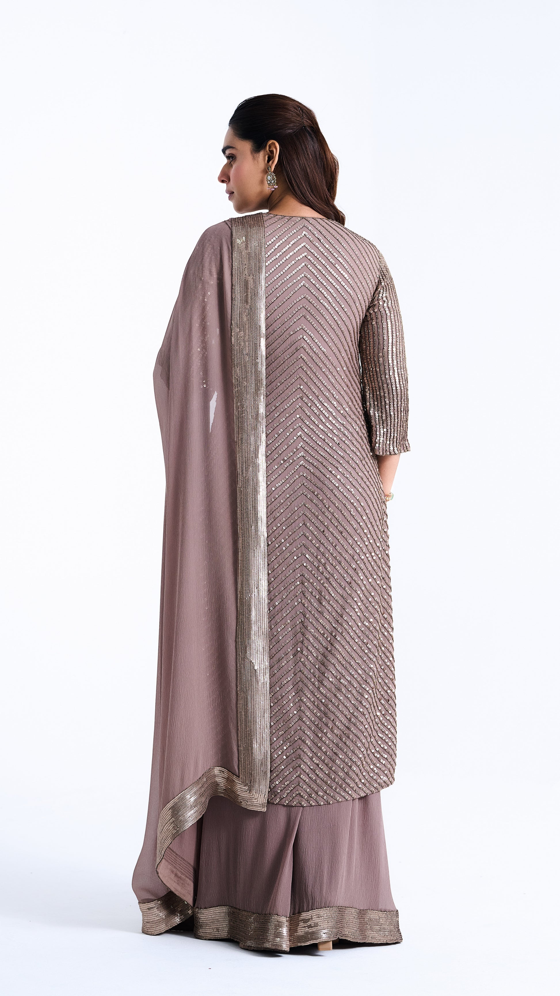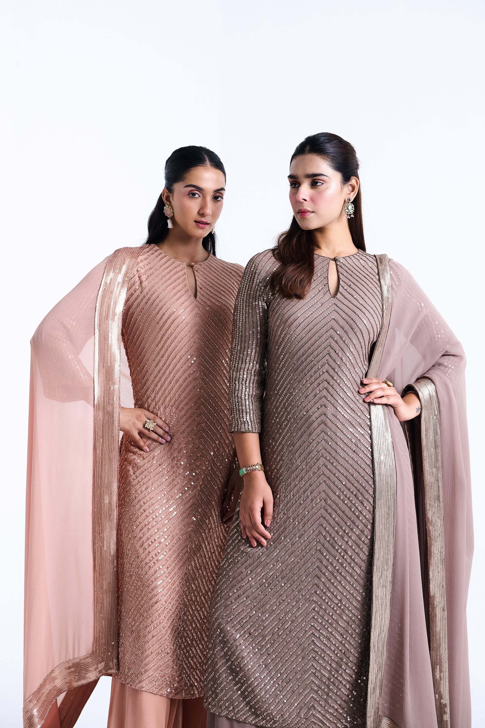 Float in ethereal grace with this tonal sequin kurta set featuring a harmonious color tone. The layered sequin design creates flowing movement, perfectly complemented by the dramatic farshi palazzo.