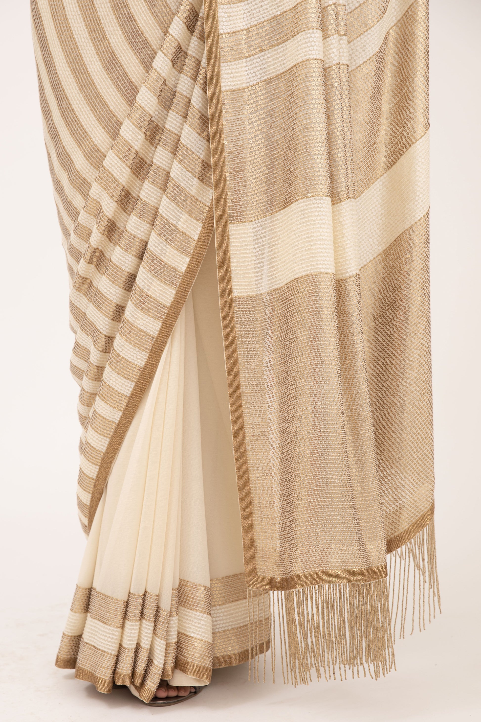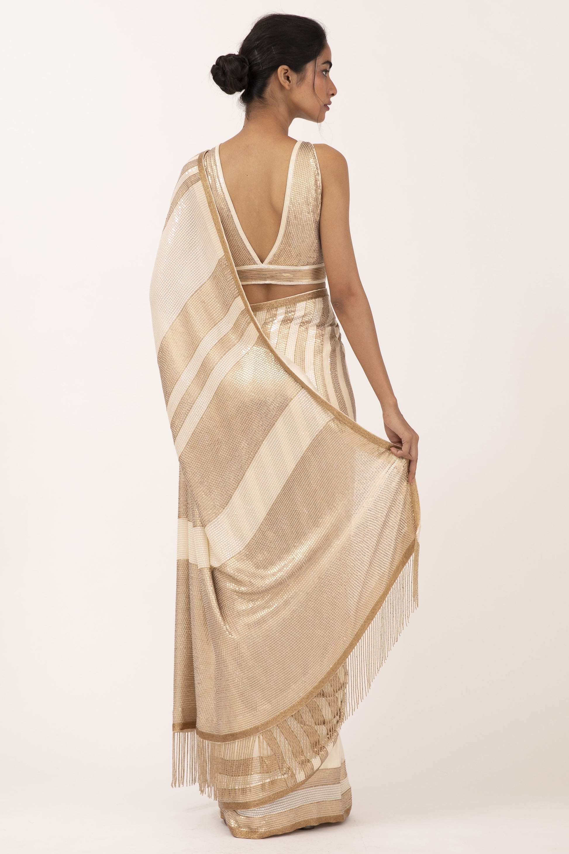 Sari in Graded Striped Sequin pattern embroidery. The look is completed with a sequin matching blouse.