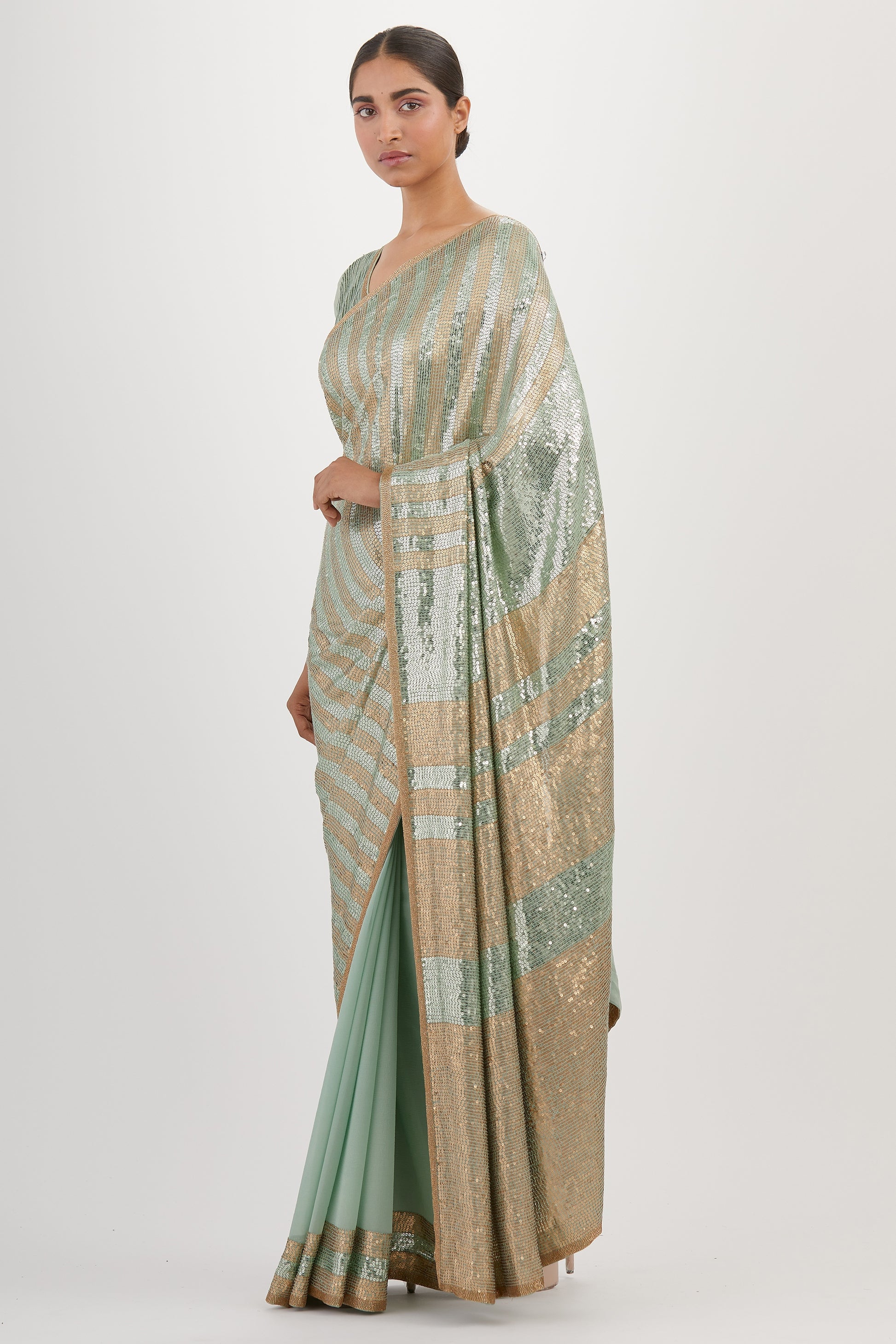 Sari in Graded Striped Sequin pattern embroidery. The look is completed with a sequin matching blouse.