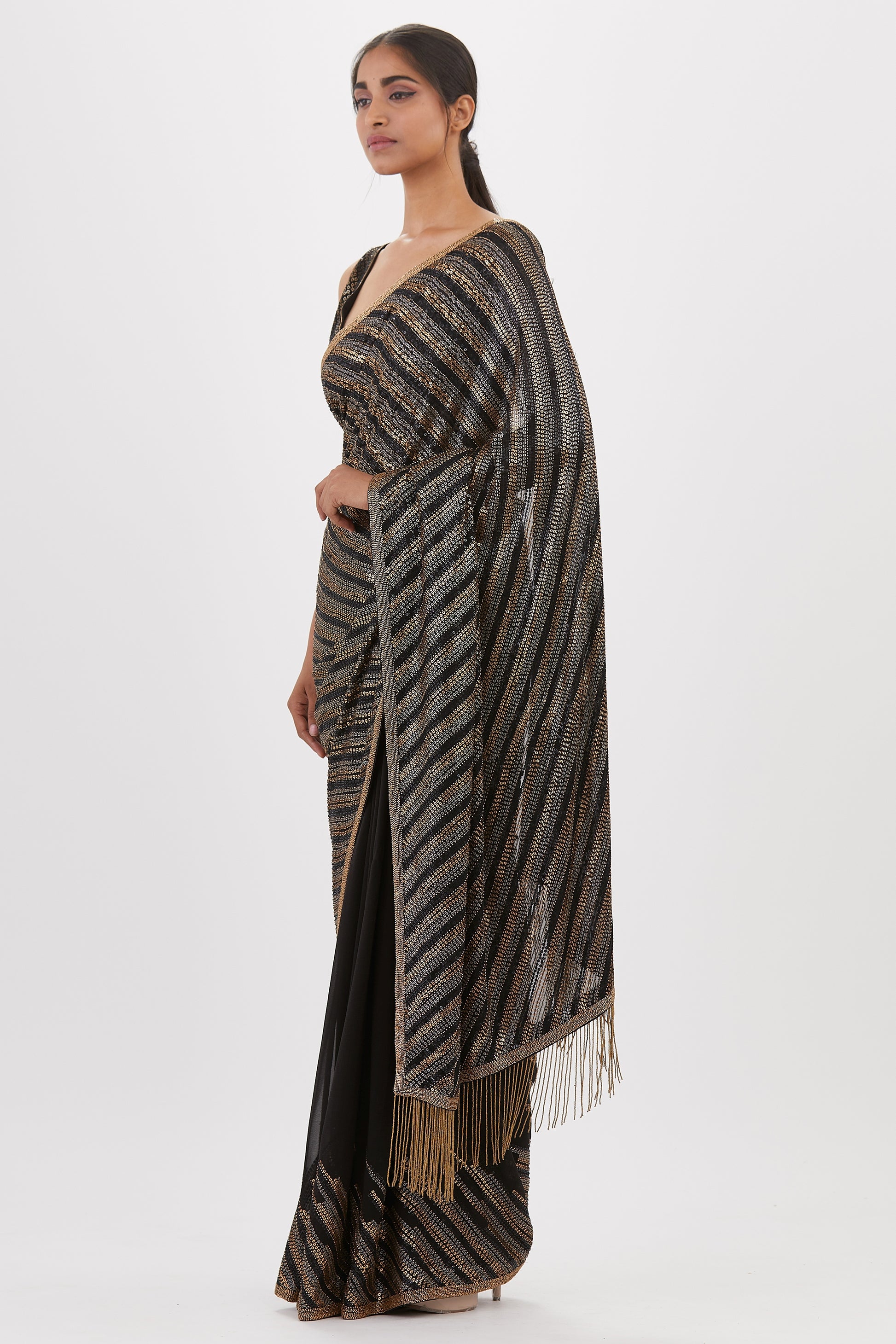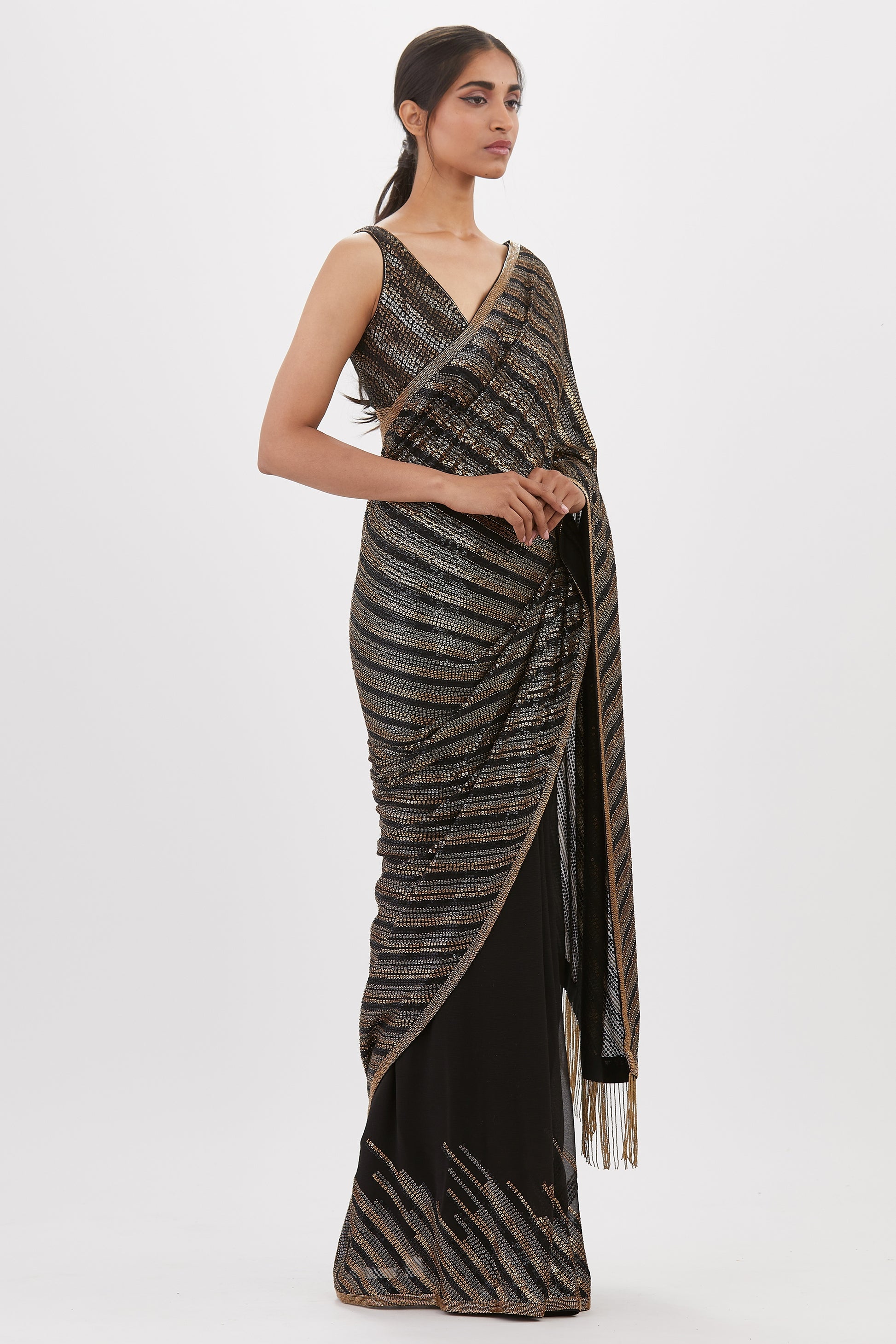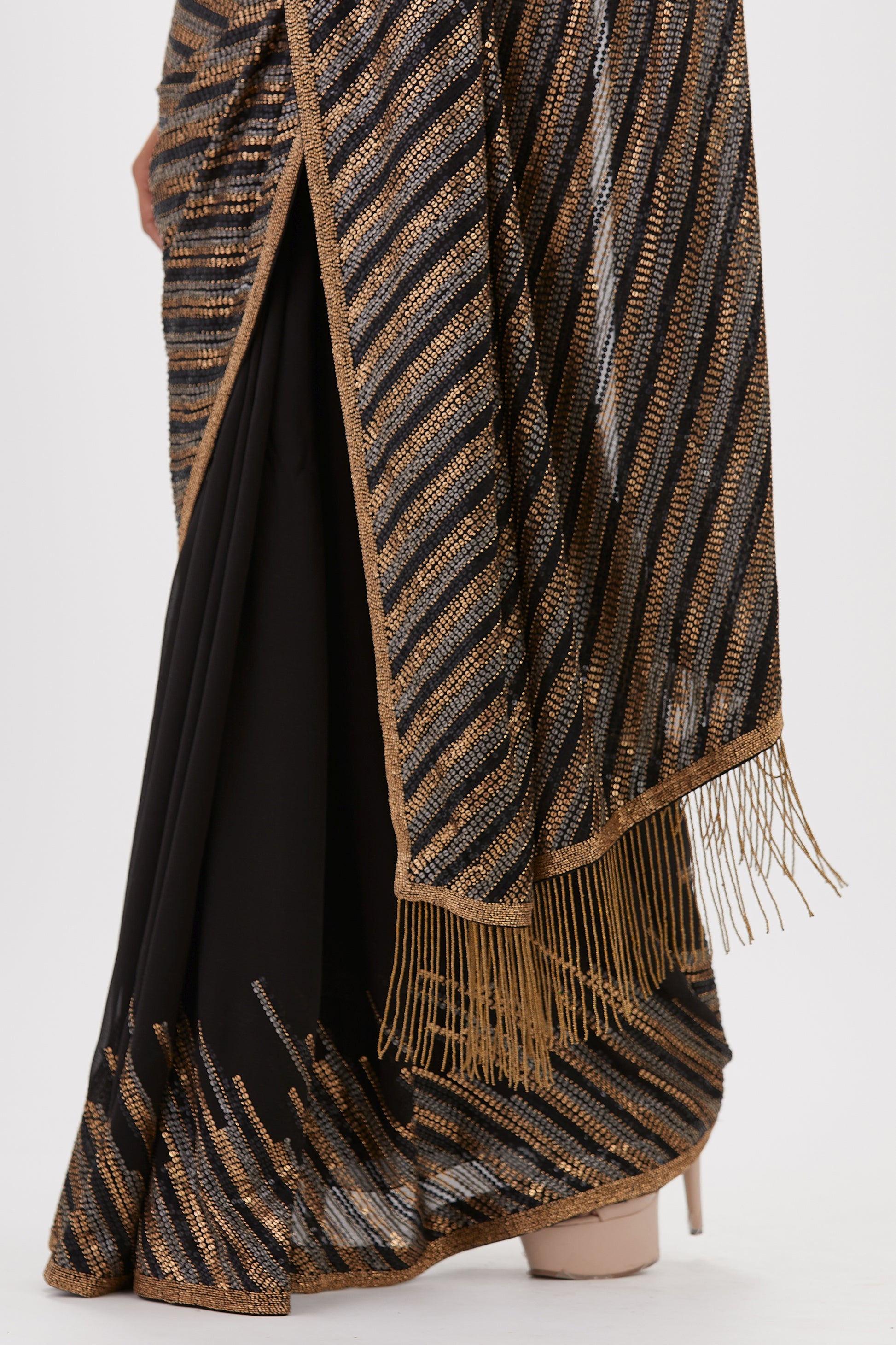Sari in Striped Sequin pattern embroidery. The look is completed with a sequin matching blouse.