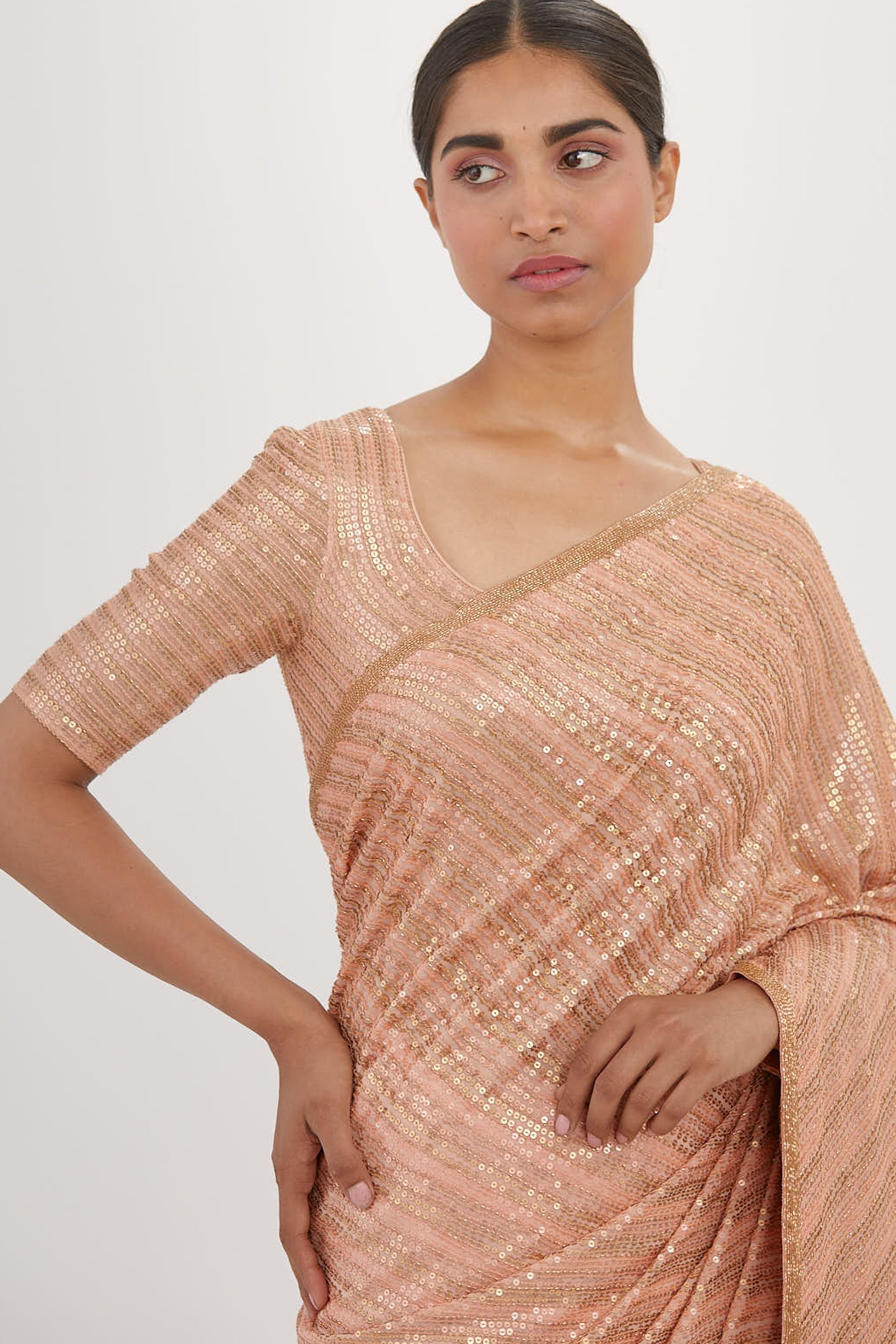 Sari in Striped Sequin pattern embroidery. The look is completed with a sequin matching blouse.