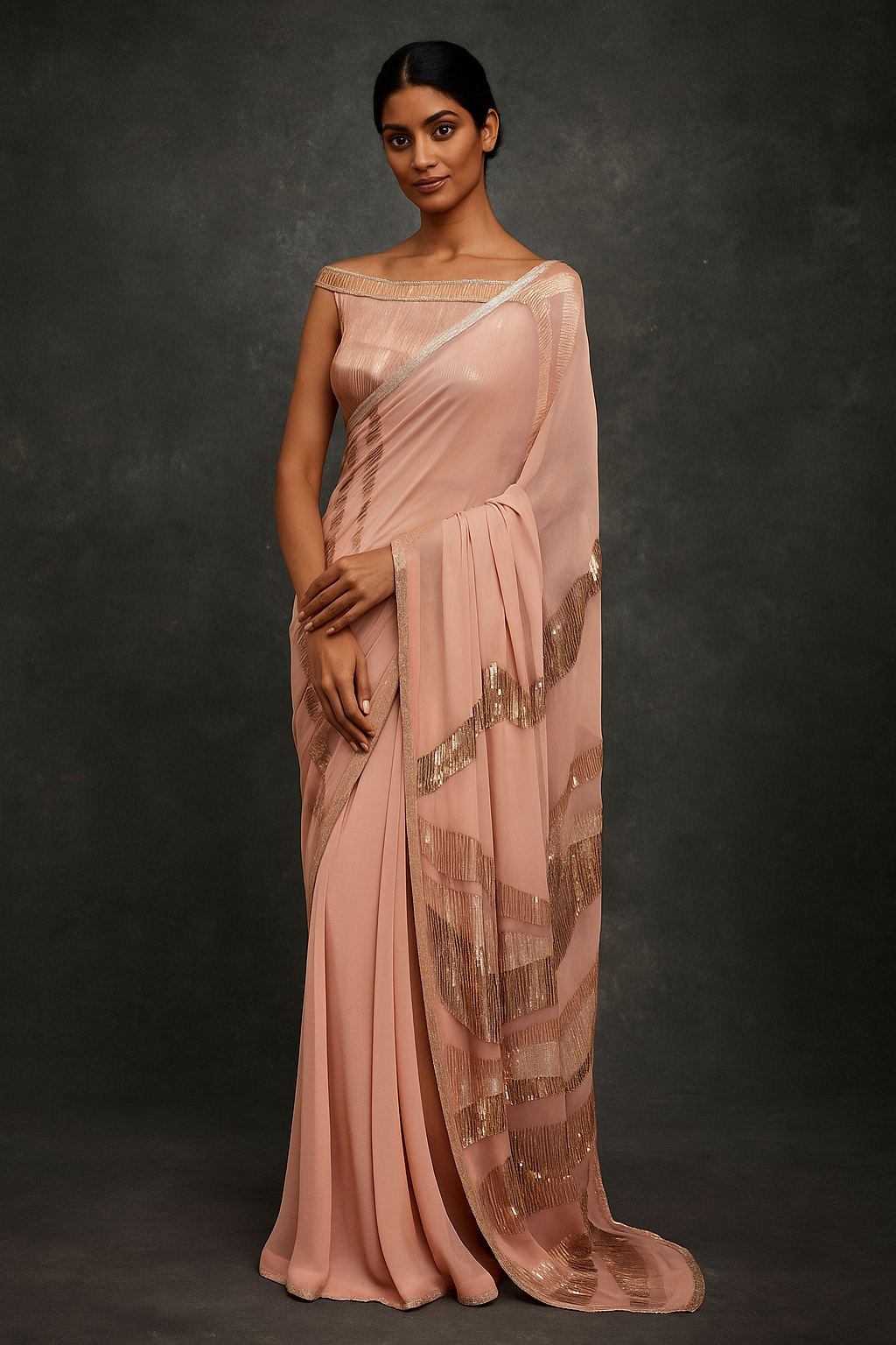 Sari in Striped sequin pattern on Palo with sheeted sequin blouse