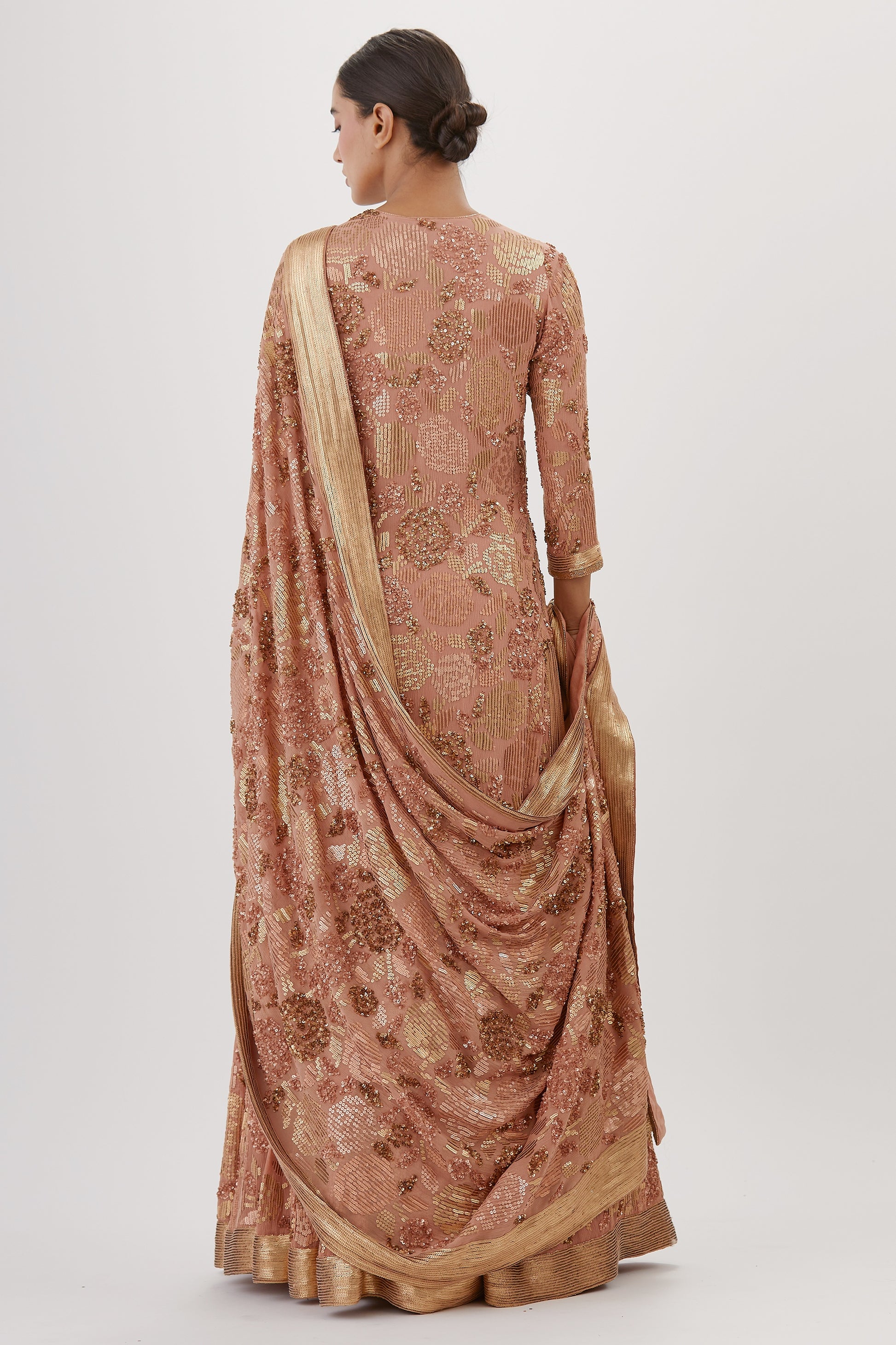 Float in ethereal grace with this signature Rose sequin kurta set featuring a harmonious color tone, perfectly complemented by the dramatic chiffon skirt and dupatta