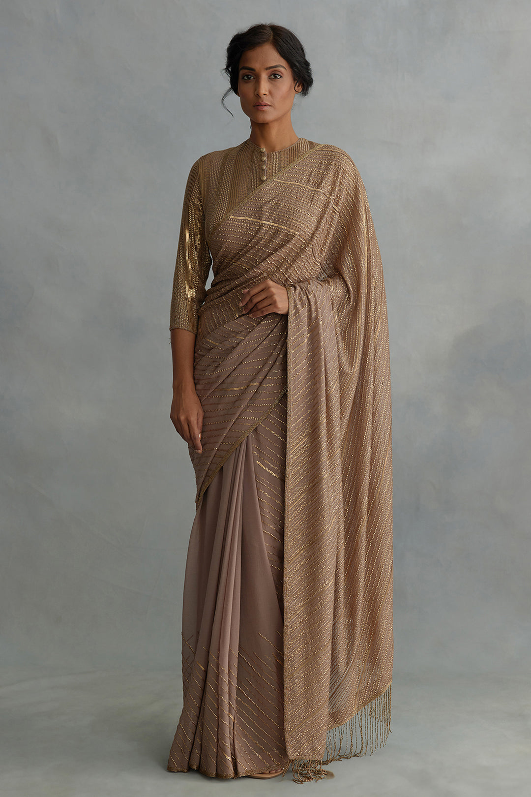 Mouse sari with diagonal dots design paired with an all over sequin work blouse