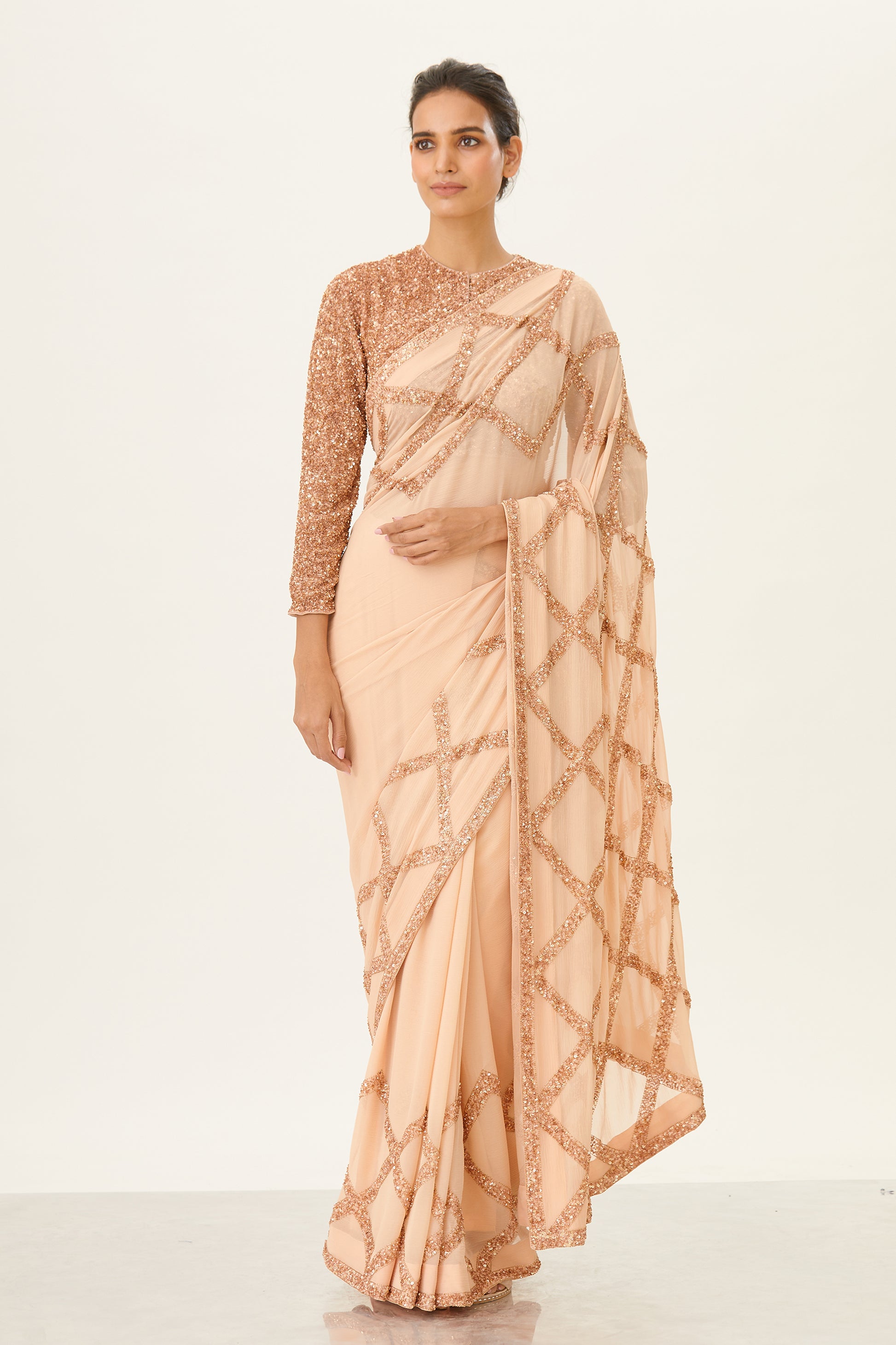 Sari in Diamond design sequin embroidery and blouse in full sequin embroidery.