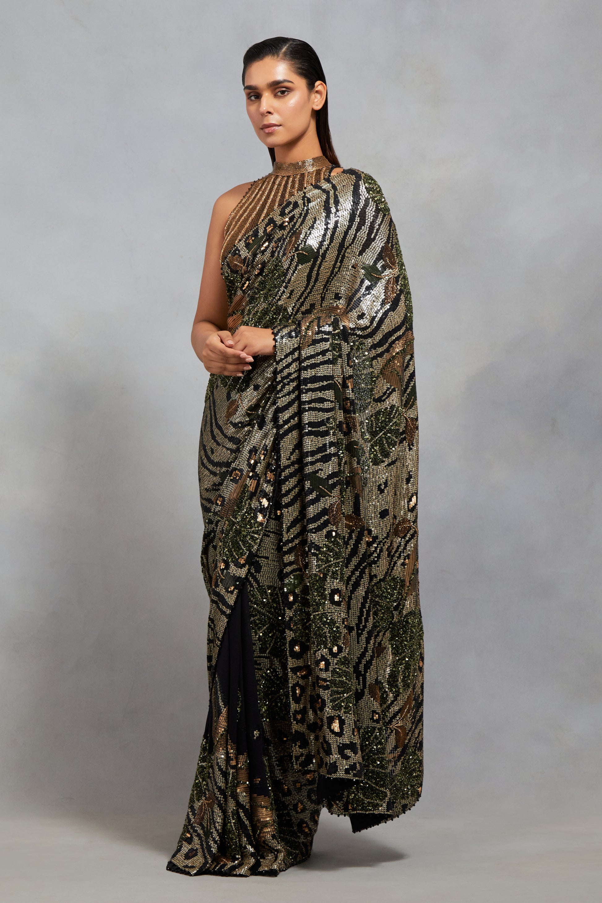 Sari Set in Sequin Embroidery in Animal & Foliage Design Pattern