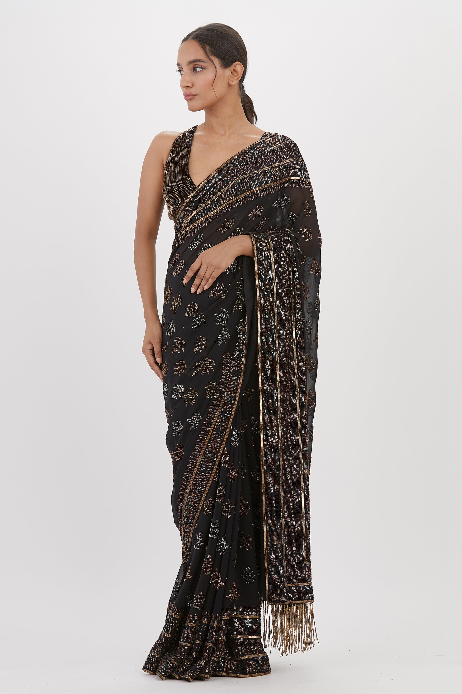 Sari Set with Spiral Beadwork and Sequin Embroidery