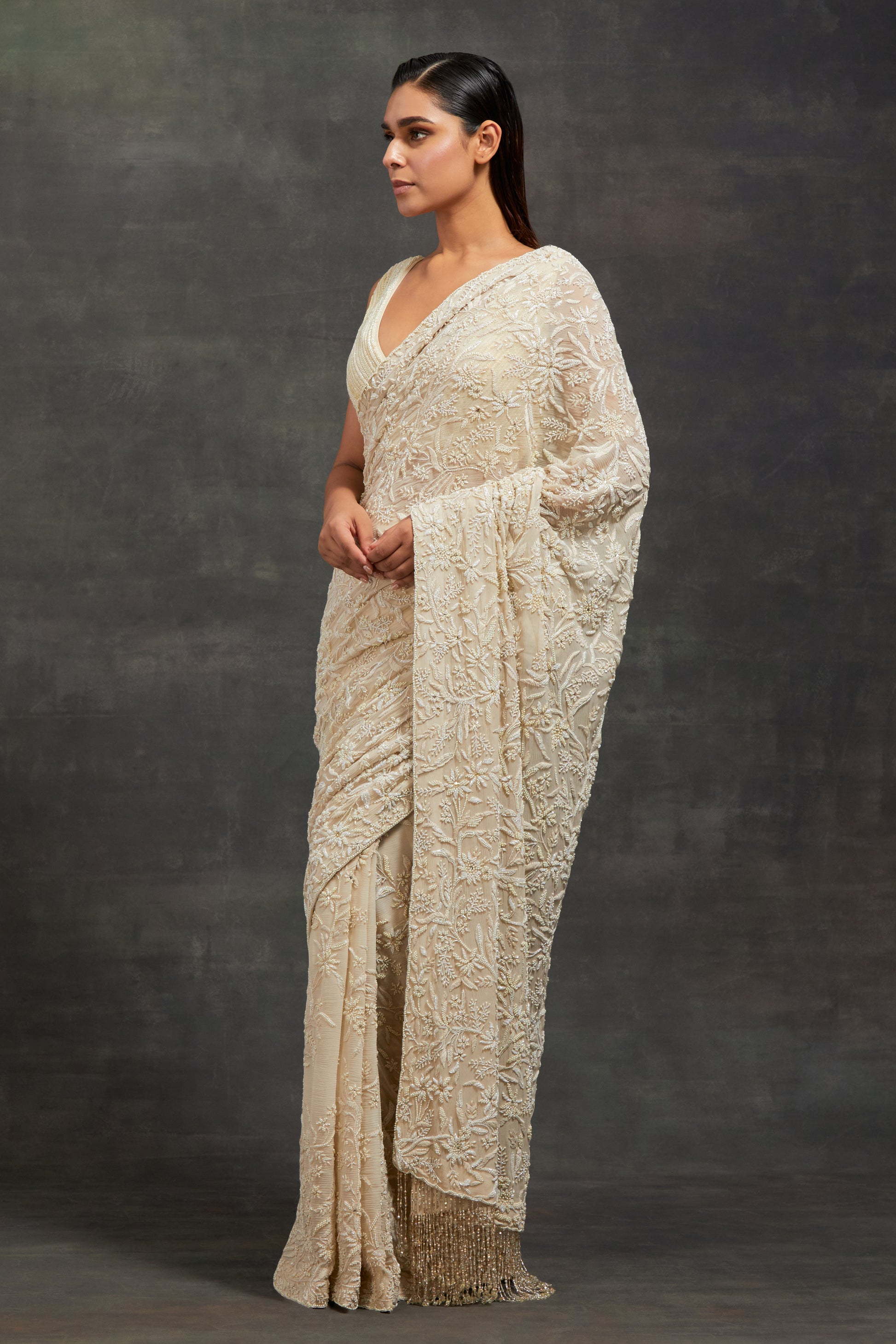 Sari Set In Pearl and Thread Embroidery