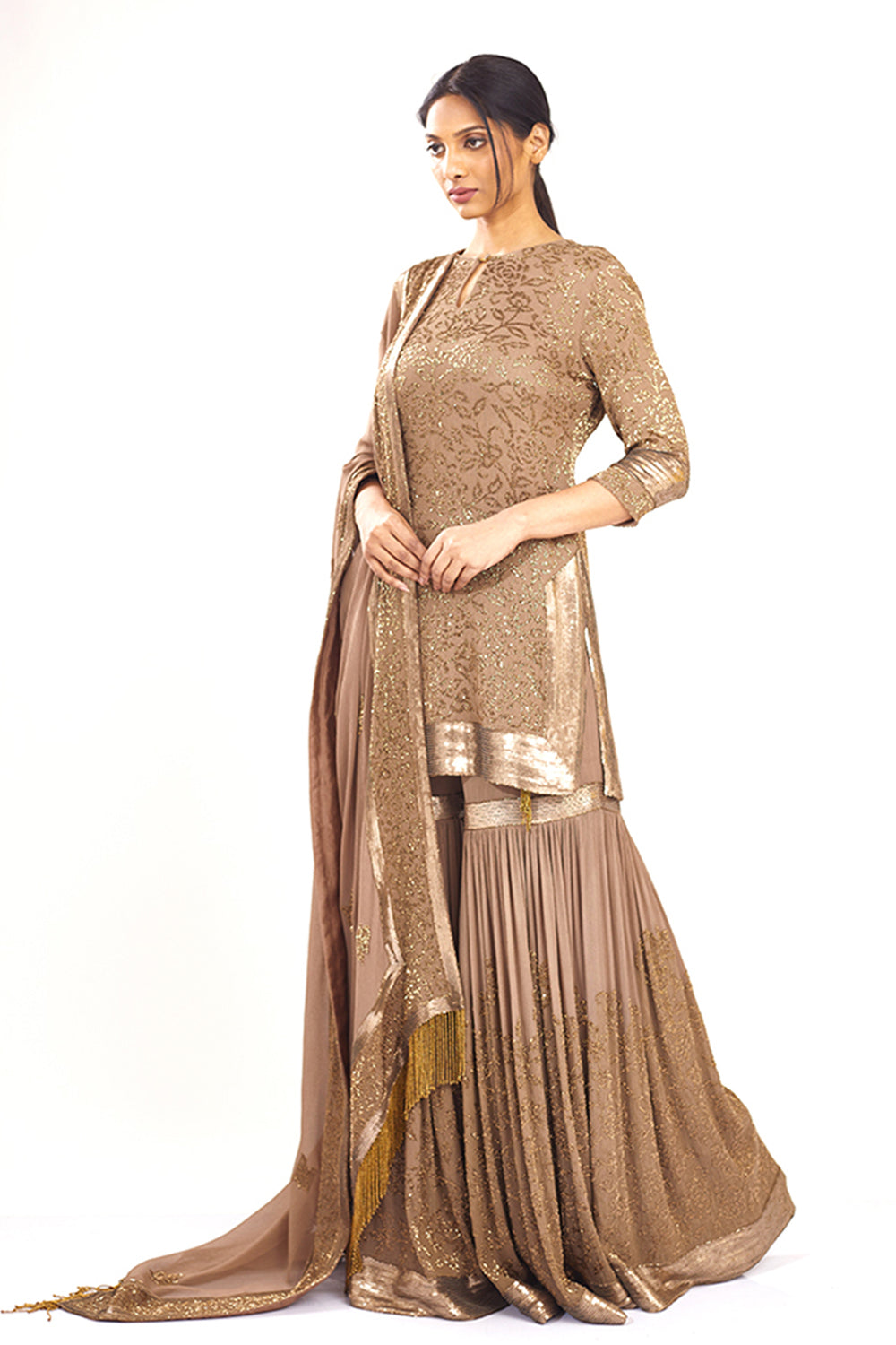 Gharara,Kurta and Dupatta in Spiral Beadwork Embroidery with Sequin borders